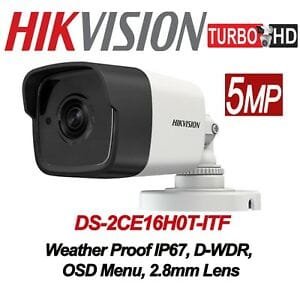 HIKVISION 5 MP Bullet Camera DS-2CE16H0T-ITF2.8mm Wide Angle Lens, IR distance up to 98ft Night Vision.