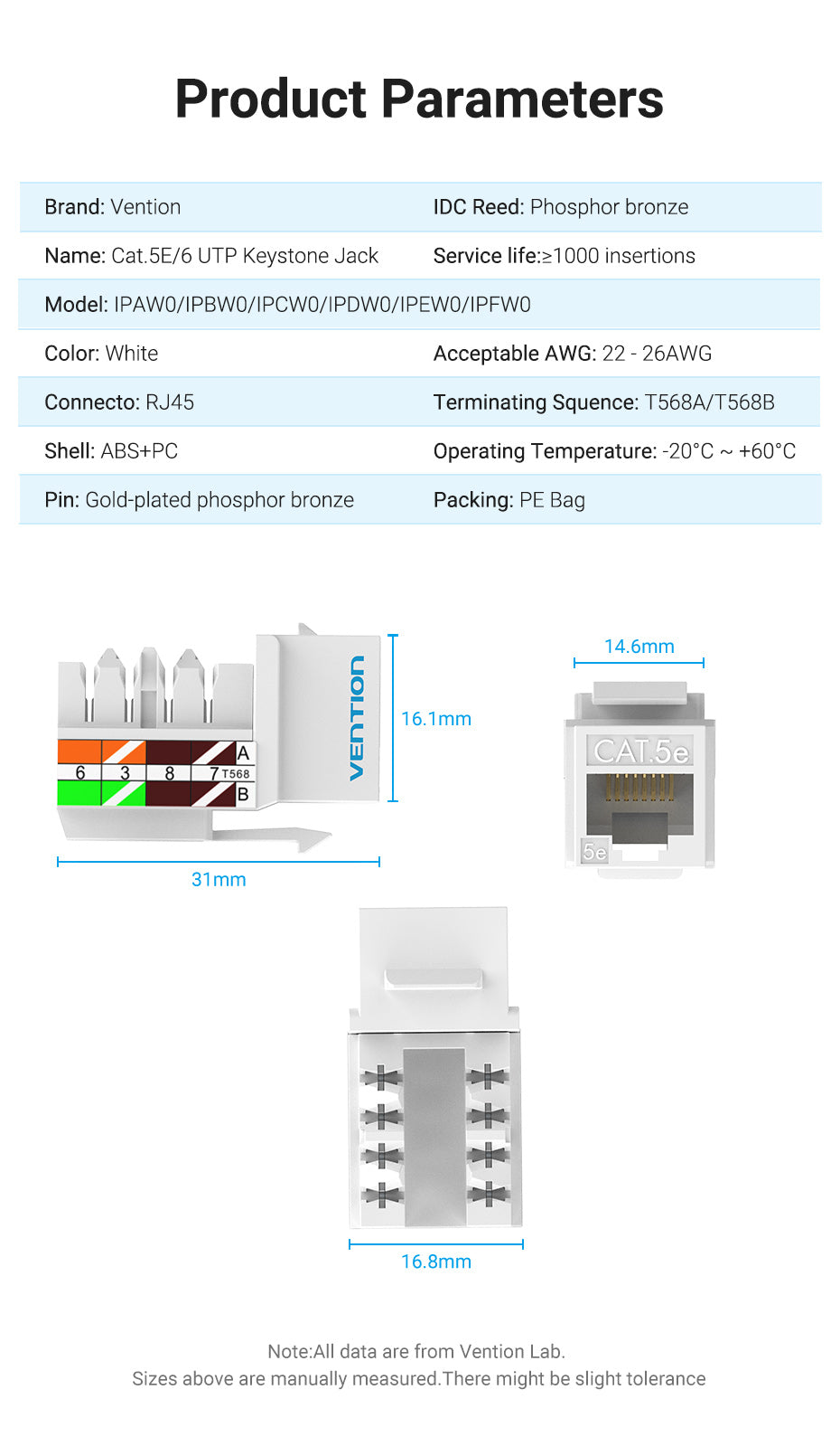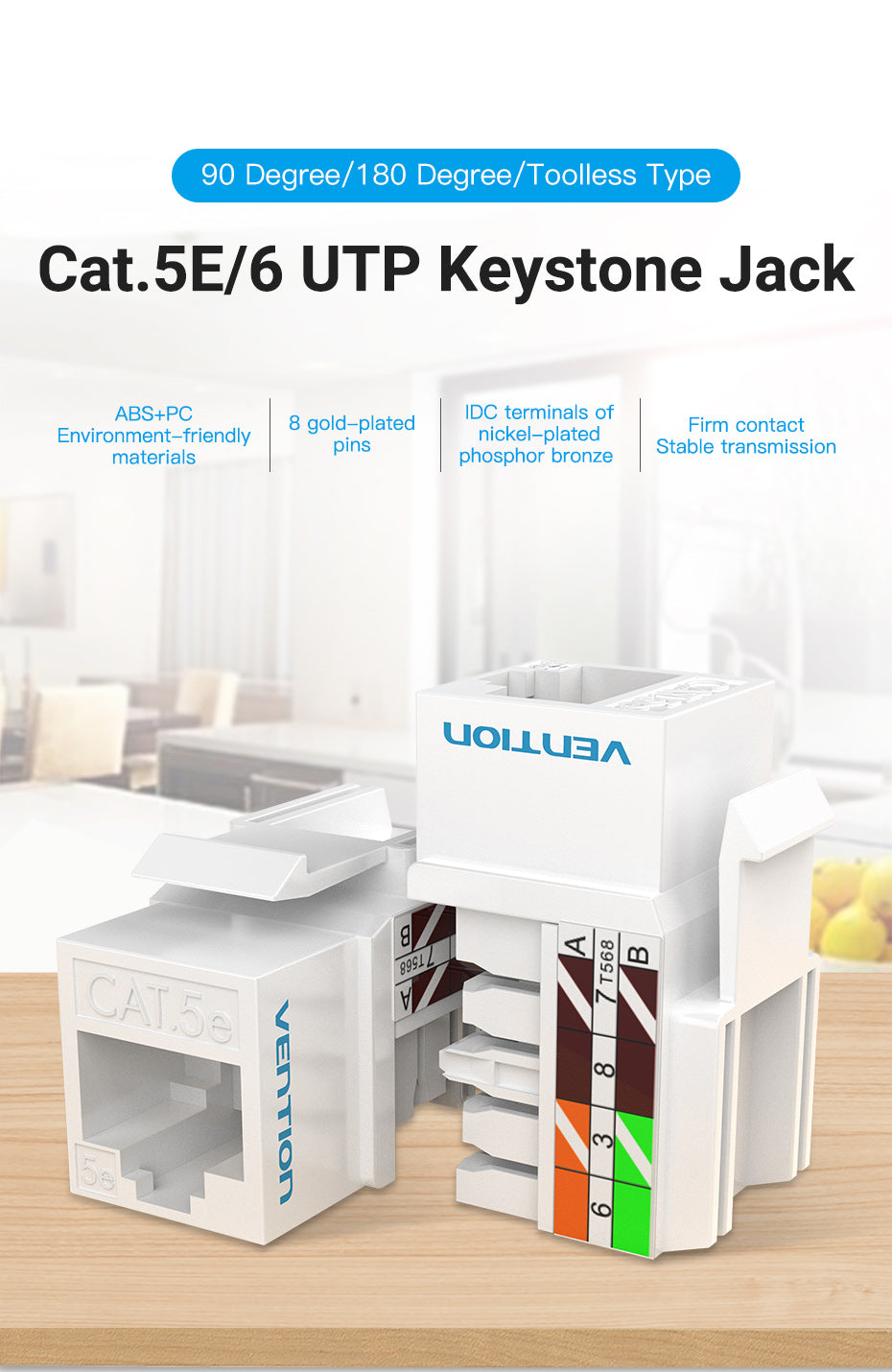Vention Cat.5E UTP Keystone Jack Product Description