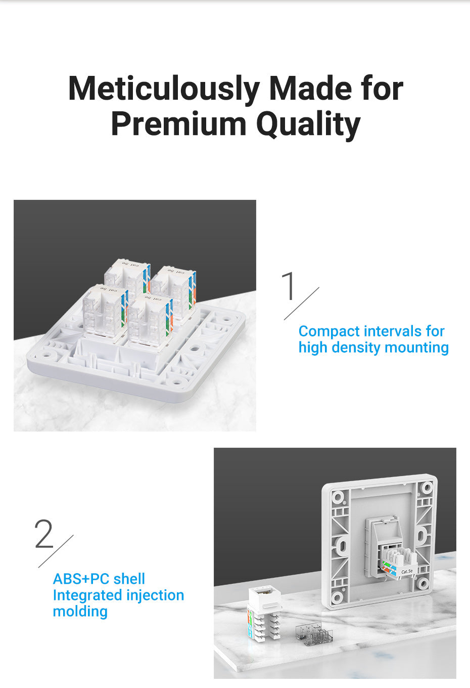 - High-Quality Materials: Crafted from environment-friendly ABS+PC materials, the keystone jack is robust and reliable. These materials not only ensure the product’s durability but also its safety, making it a sustainable choice for long-term use.