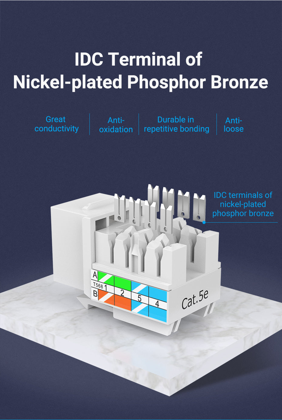 - Reliable Terminals: The IDC terminals are made of nickel-plated phosphor bronze, known for its excellent conductivity and anti-oxidation properties. This material ensures the terminals are durable in repetitive bonding and secure against loosening, maintaining a reliable connection throughout its usage.