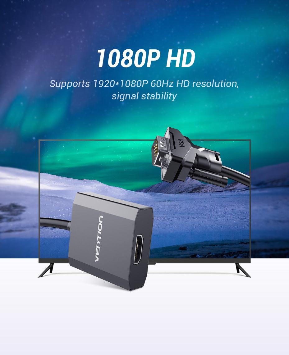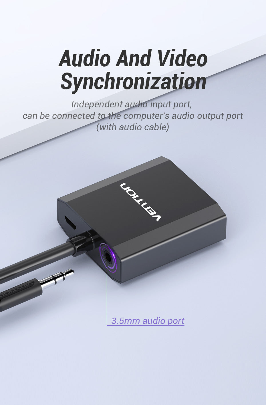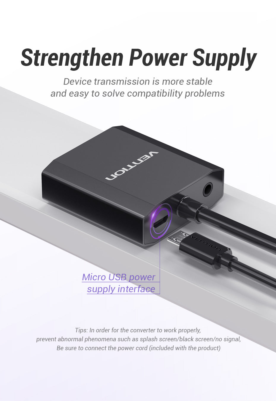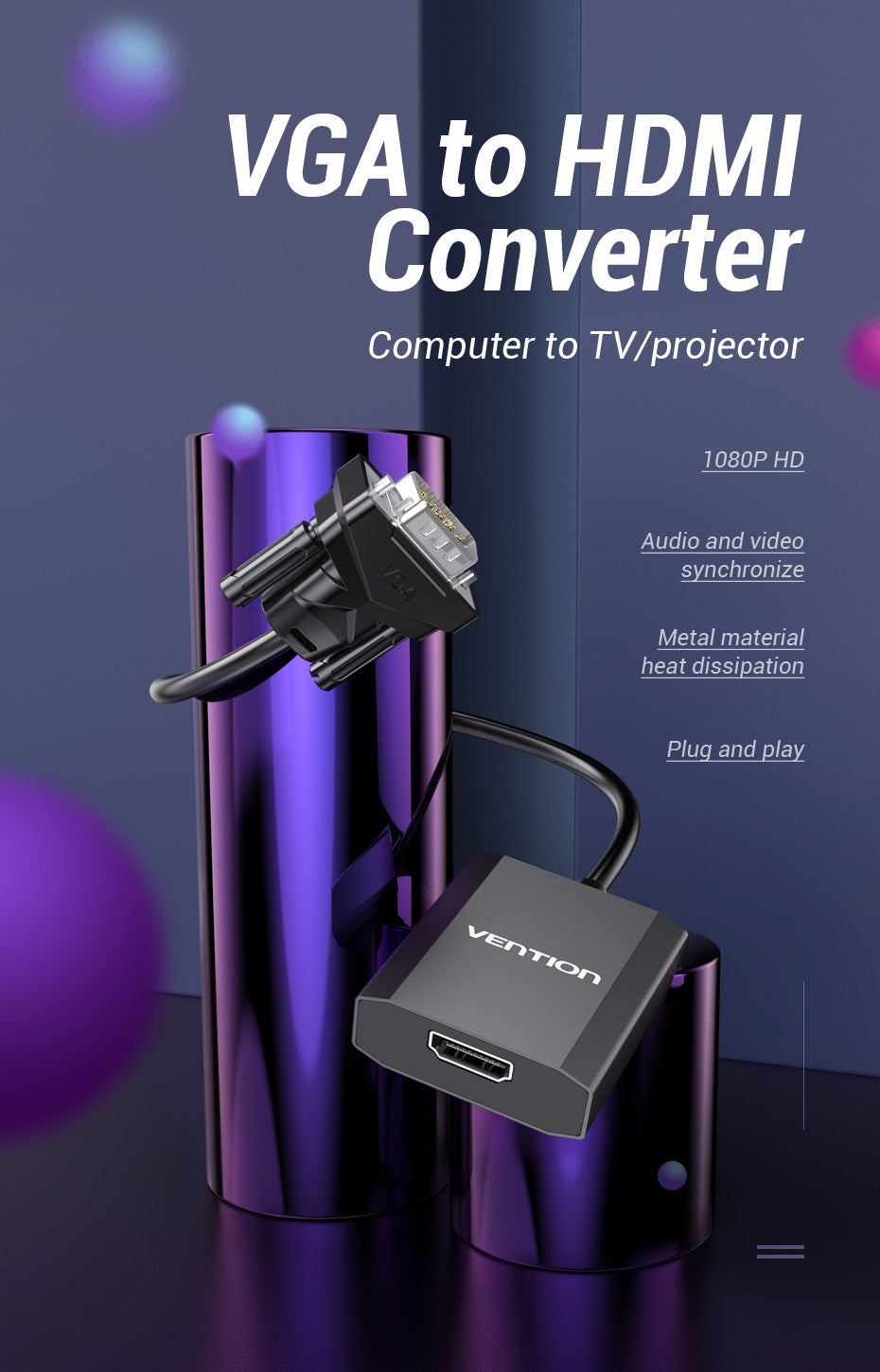 VGA to HDMI Converter with Female Micro USB and Audio Port Laptop Desktop Product Description
